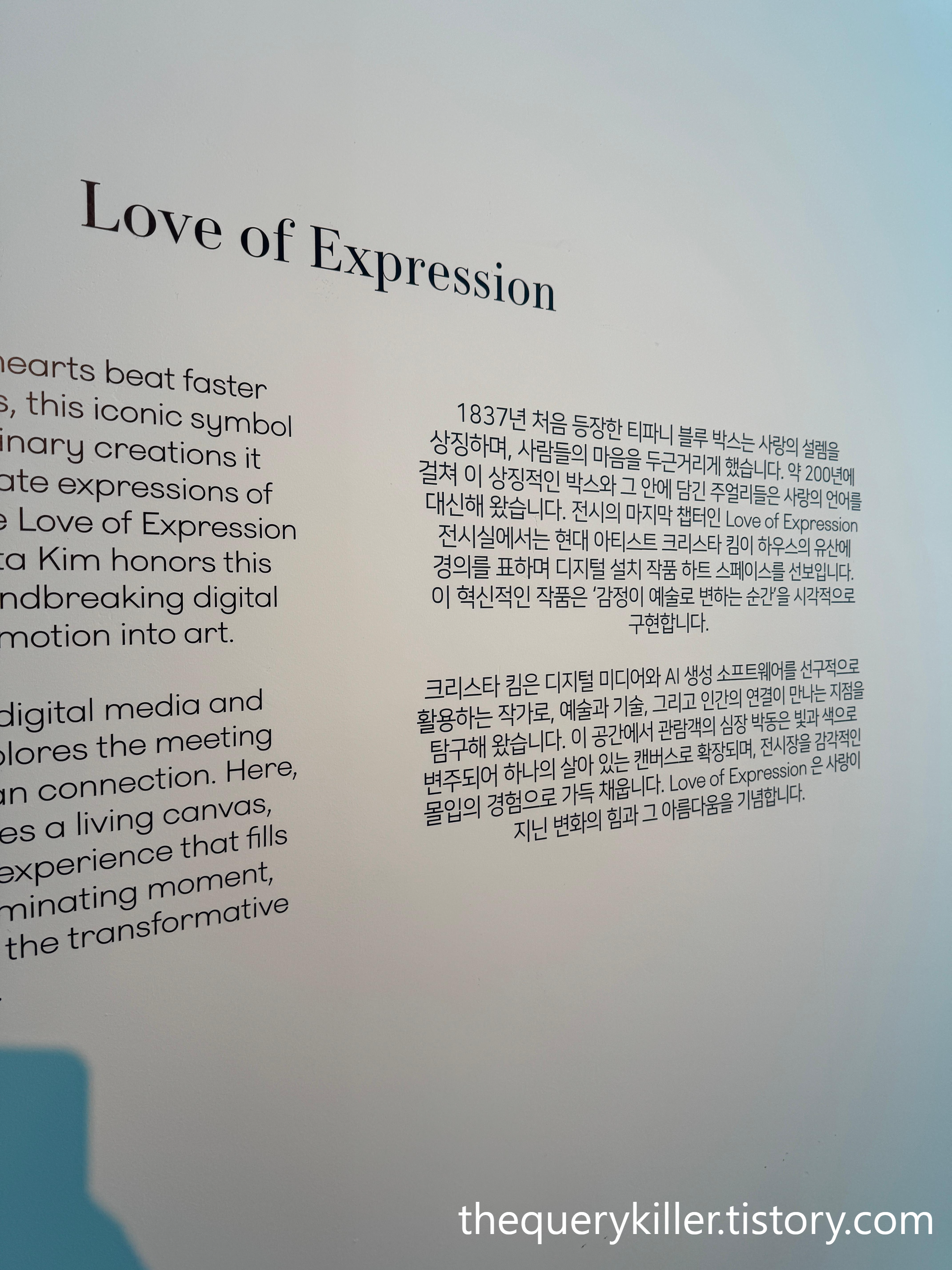 전시장에 흐르던 음악, 반짝이던 조명, 그리고 유리 너머의 주얼리들. 그 모든 게 “사랑이 얼마나 오래 빛날 수 있는가”를 보여주는 장면 같았어요. 누군가와 함께 가도 좋고, 혼자 조용히 돌아봐도 충분히 따뜻한 전시. 이번 겨울, 잠실에서 티파니의 블루빛 사랑을 꼭 한 번 경험해보세요.
