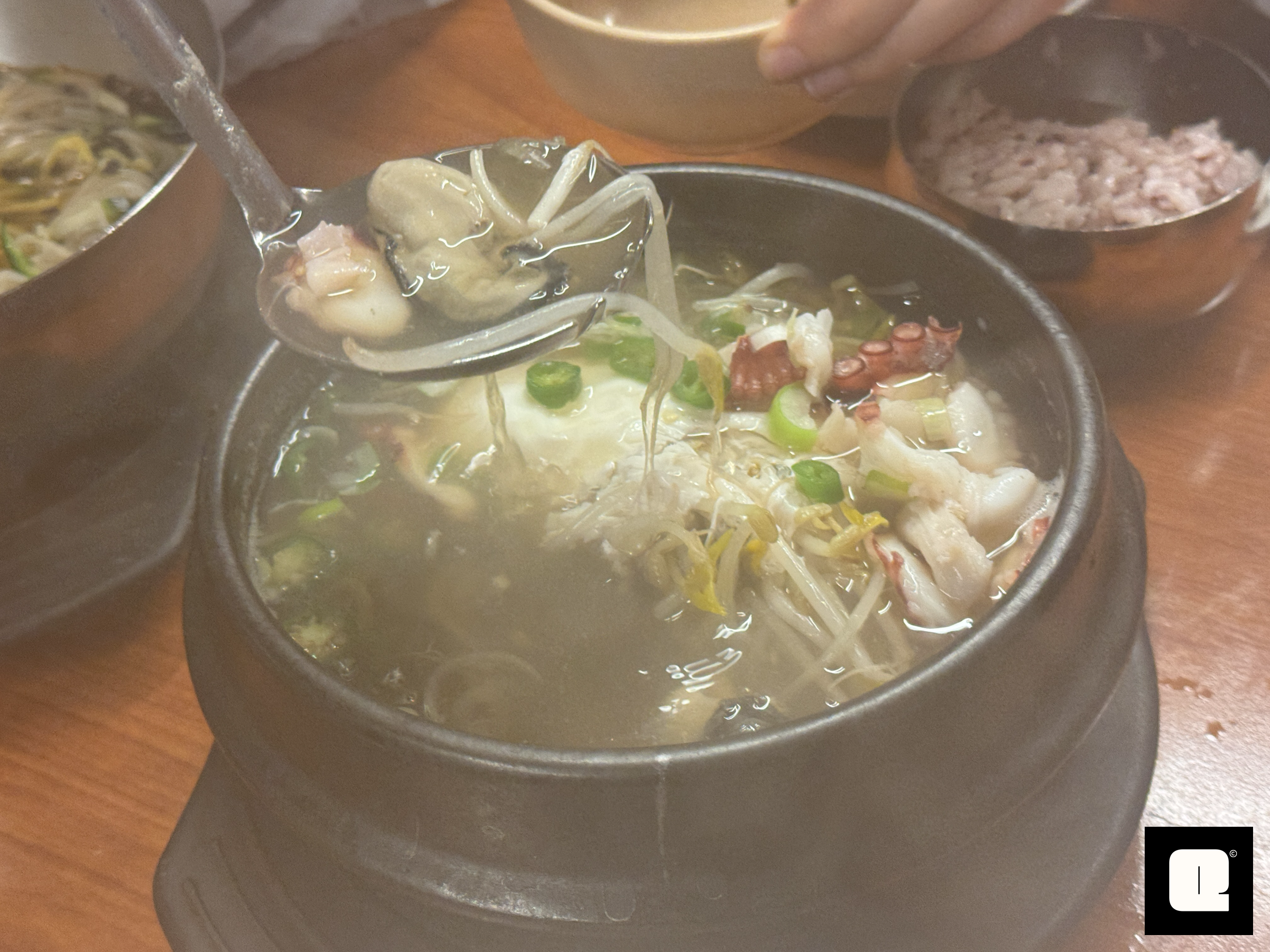 돌문맑은탕은 맑은 국물인데도 깊다. 콩나물, 조개, 돌문어, 굴, 청양고추가 들어가 국물에 시원함이 층을 만든다.