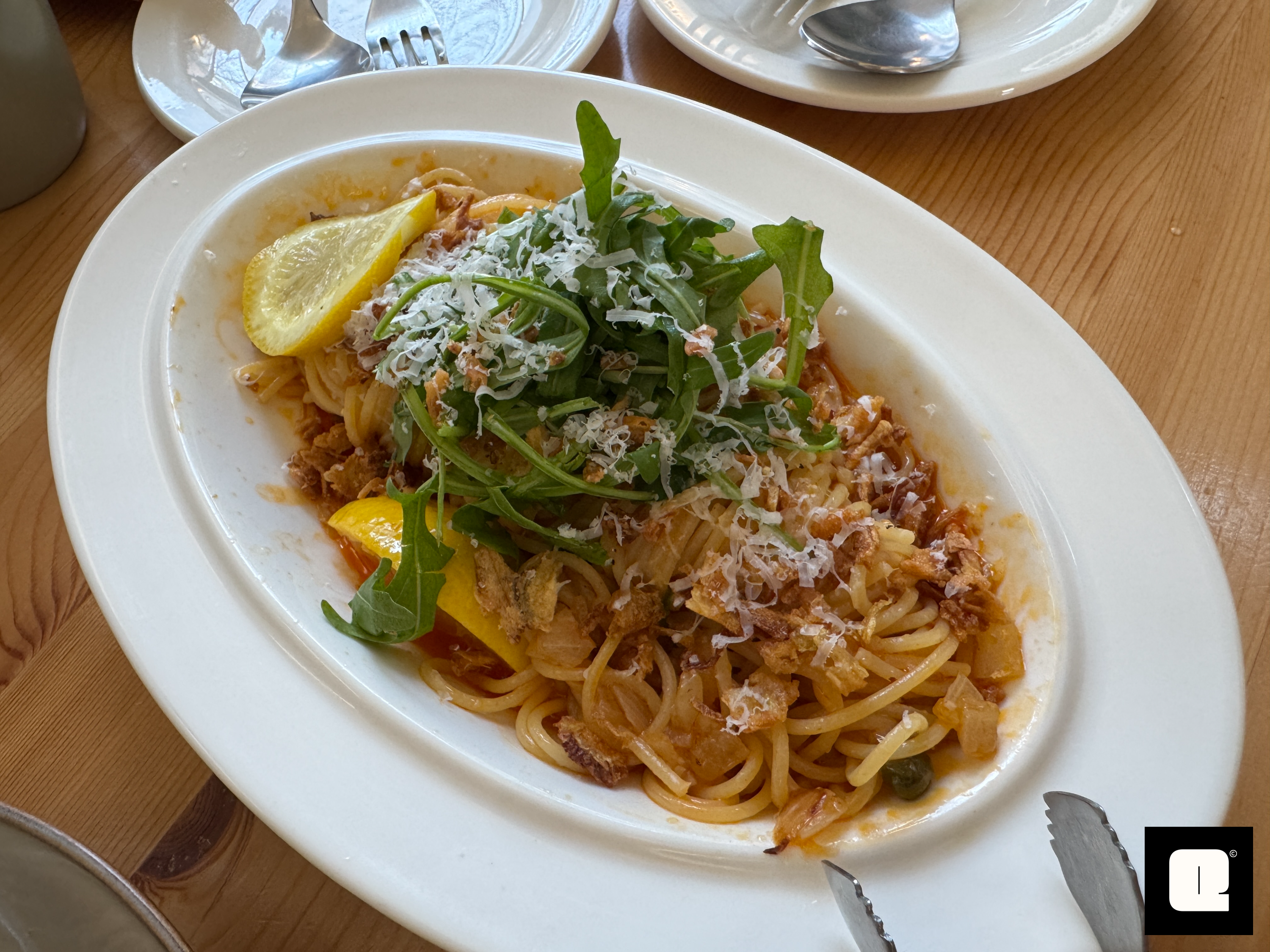 레몬의 산미와 앤쵸비의 짭짤함, 거기에 매콤함이 더해진 메뉴. 처음엔 “어? 생각보다 안 맵네?” 했다가 먹을수록 매운 기운이 은근히 올라온다. 맵찔이인 우리는 마지막에 살짝 땀을 흘렸지만, 그게 또 중독성 있다. 느끼함 없이 깔끔하게 매콤.