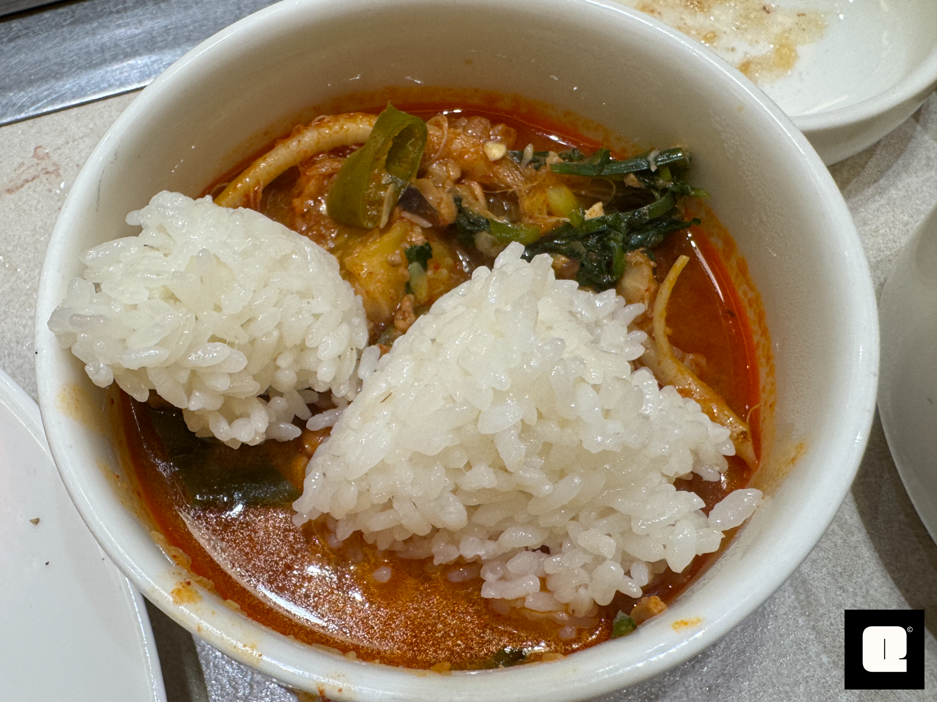 국물이 진하고 깊어서 한 사람이 공기밥을 추가로 주문했다.