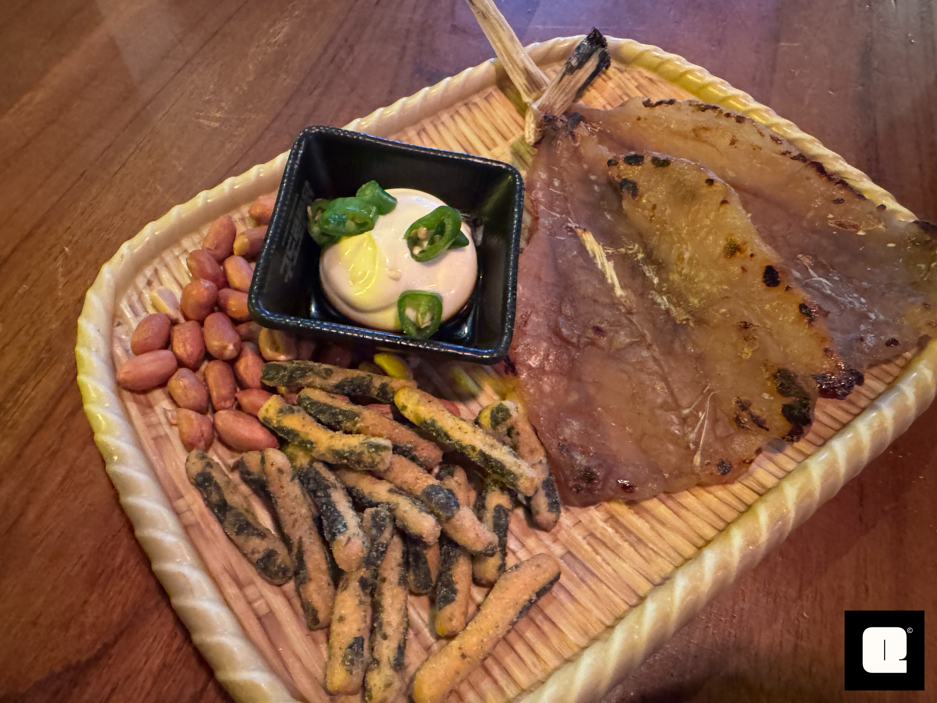 옆에 땅콩과 과자가 같이 나와서 술 마시며 집어먹기 좋다.