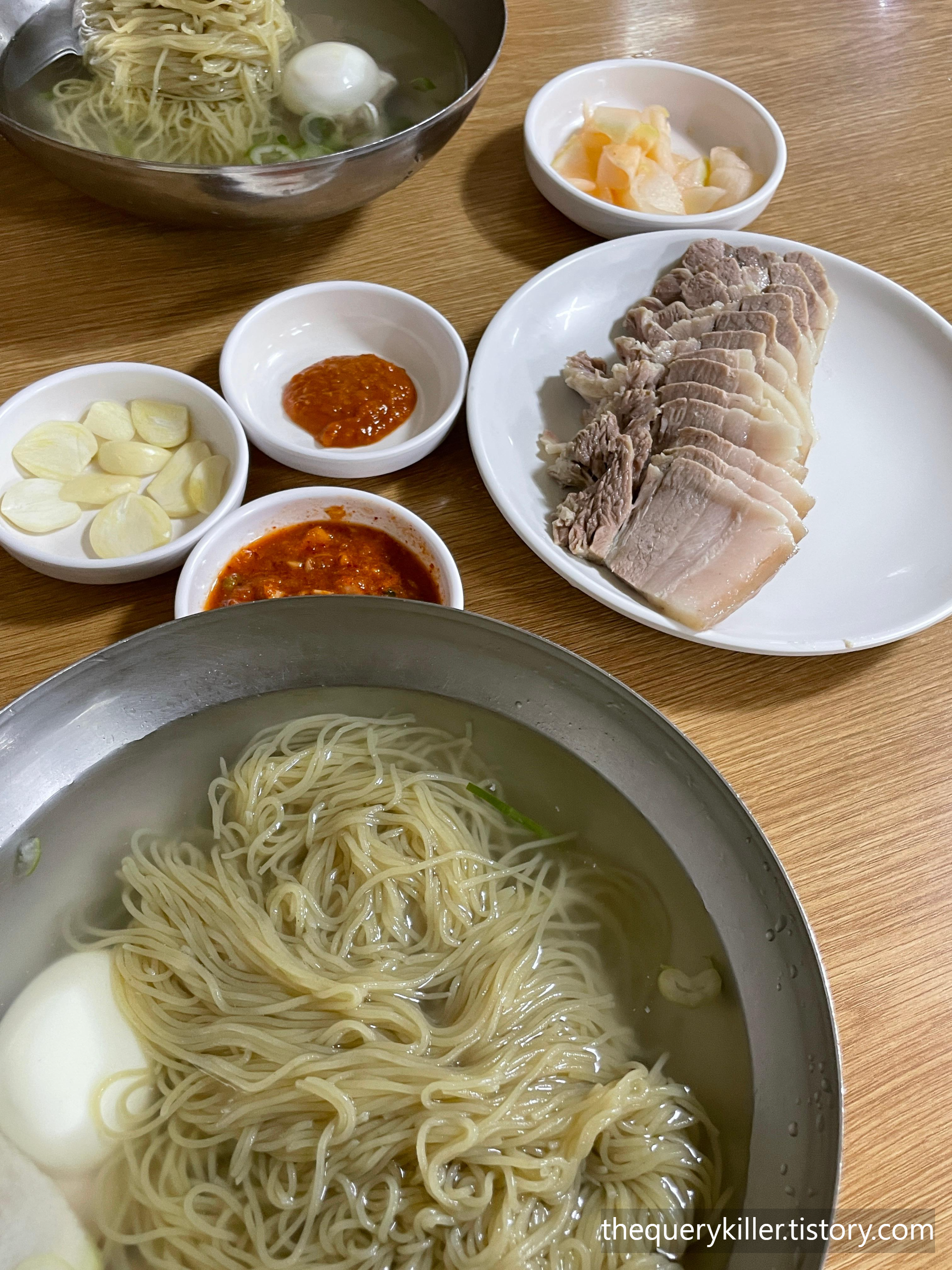처음 이 집을 찾았을 때는 작은 공간 하나뿐이었다. 그런데 시간이 지나면서 진미의 인기는 폭발적으로 커졌고 결국 맞은편에 별관이 생겼다. 지금은 오히려 별관이 확장돼 본관처럼 쓰이고 있다. 평양냉면에 대한 수요가 이렇게 많다는 게 신기하기도 하지만 진미를 좋아하는 입장에서 흐뭇한 일이다. 다만 아무리 좋아도 단점은 있다. 사람들이 워낙 많다 보니 테이블 간격이 좁고 소음이 상당하다. 정말 너무 시끄럽다. 대화를 하려고 가는 날이라면 나는 적극적으로 말릴 것이다. 하지만 오로지 평양냉면을 먹으러 간다면 굳이 말릴 이유가 없다. 맛 하나만큼은 확실하니까.