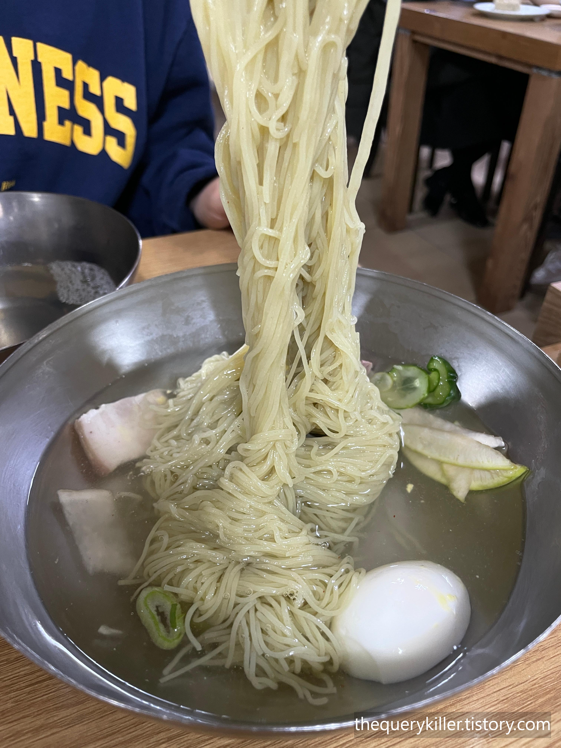 강남에서 평양냉면을 떠올릴 때 가장 먼저 생각나는 곳이 있다면 나는 주저 없이 진미를 꼽는다. 몇 번이 아니라 수도 없이 먹다 보니 어느새 내 입맛에 평양냉면의 기준처럼 굳어버린 곳이다. 멀리 찾아가야 하는 맛집이 아니라 딱 집밥처럼 익숙하고 편안한 맛. 진미의 평양냉면은 바로 그런 느낌이다.