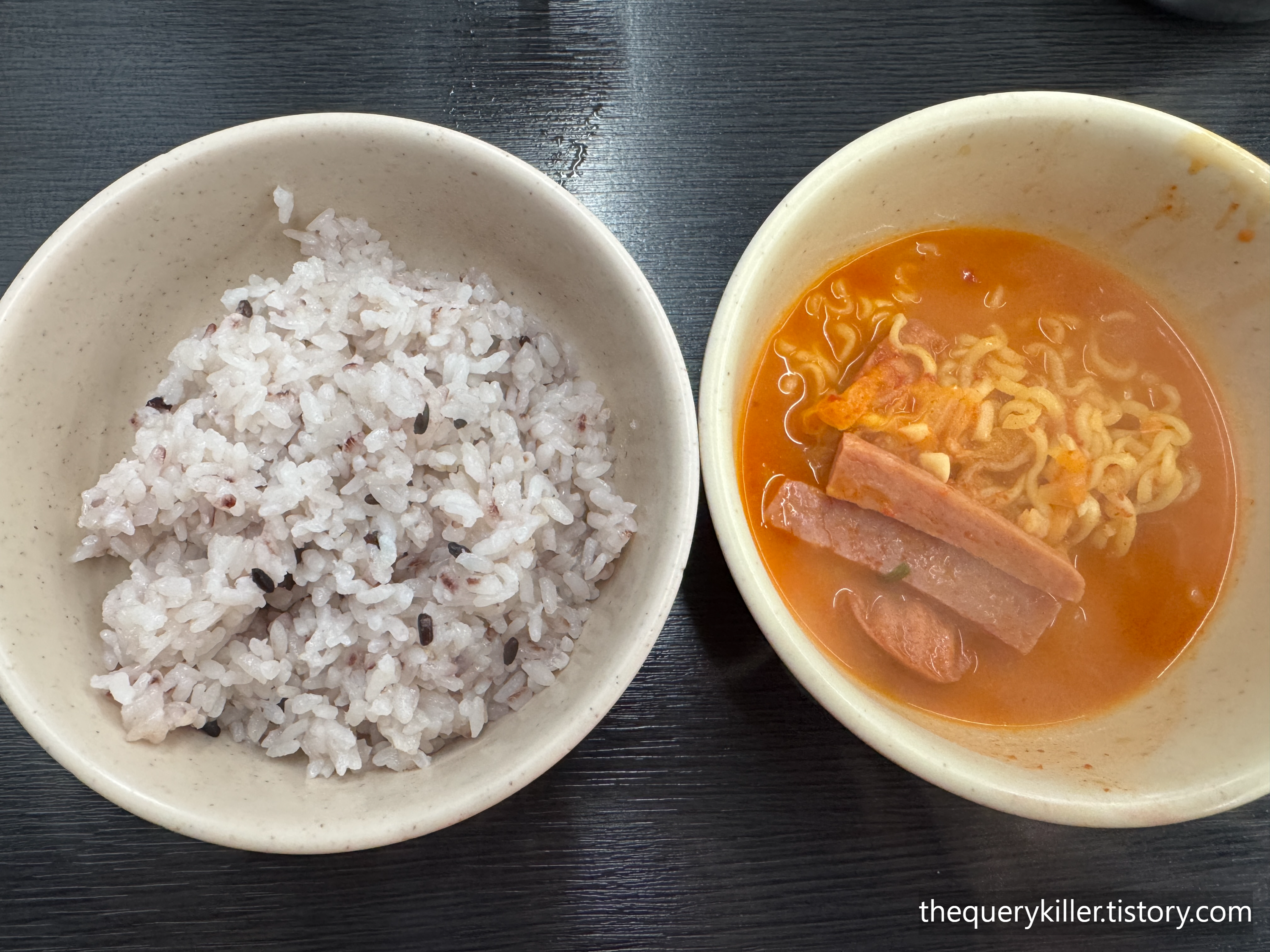 이 집에서 라면 사리는 선택이 아니라 필수다. 봉투를 뜯는 순간부터 마음이 급해진다. 라면이 국물 맛을 한 번 더 끌어올리기 때문에, 퍼지지 않게 타이밍을 잘 맞춰 서둘러 건져 먹어야 한다. 라면과 햄, 김치, 국물이 한 번에 모이면 “이건 그냥 술안주가 아니라 밥도둑”이 맞다.