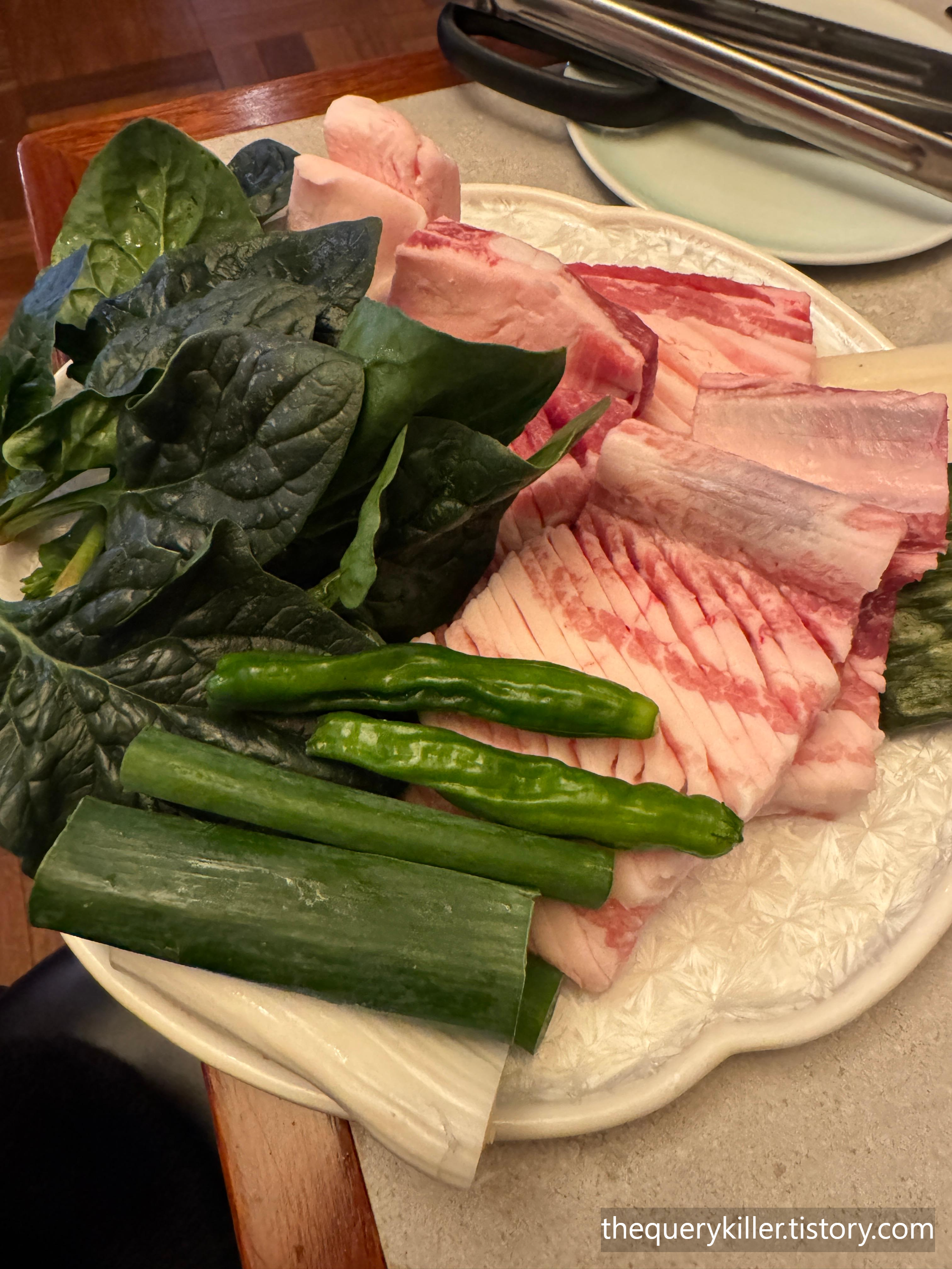 고기가 적당히 익자, 종업원이 먼저 소금만 찍어 먹어보라고 권한다. 그냥 소금이 아니라 신안에서 직접 가져온 귀한 소금이라고. 한 입 베어 물자마자 이 집이 왜 추천받았는지 단번에 이해된다. 육즙이 입안 가득 터지면서 씹는 식감이 살아 있고, 깔끔하게 떨어지는 소금의 밸런스까지… 정말 ‘맛있다’는 말 외엔 다른 표현이 떠오르지 않는다.