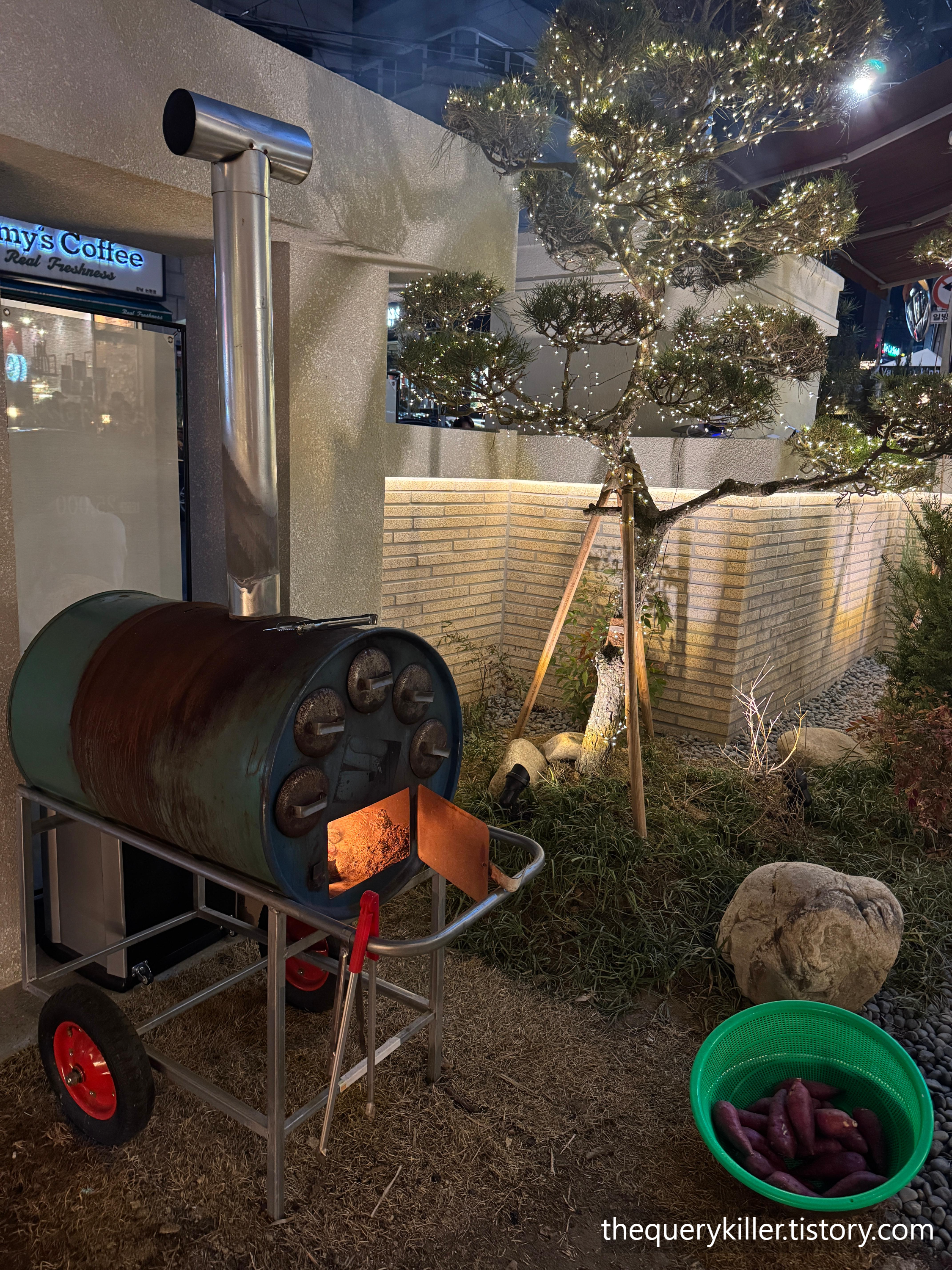 기분 좋게 식사를 마치고 나오는데, 정원 한편에서 군고구마 굽는 냄새가 솔솔. 배에 조금만 자리가 있었다면 바로 먹었을 텐데! 식사 안 하고 군고구마만 사러 와도 된다고 하니 다음엔 꼭 사먹기로!