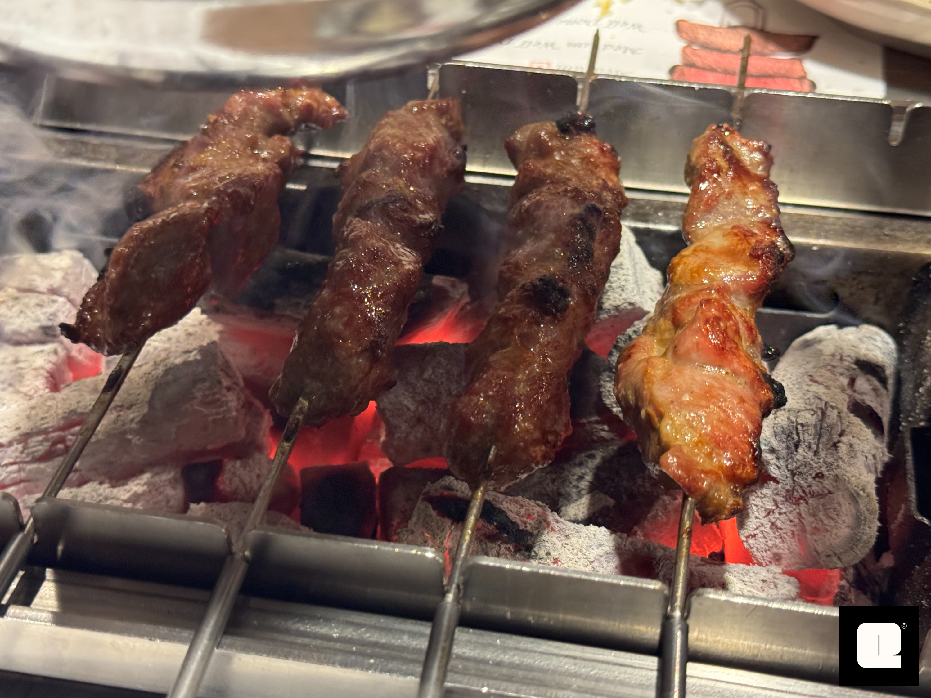 양꼬치는 약간 초벌이 된 상태로 나와 불에 올려 구워 먹는 시간이 길지 않다. 곁들여 나오는 반찬들도 함께 먹기 좋다.